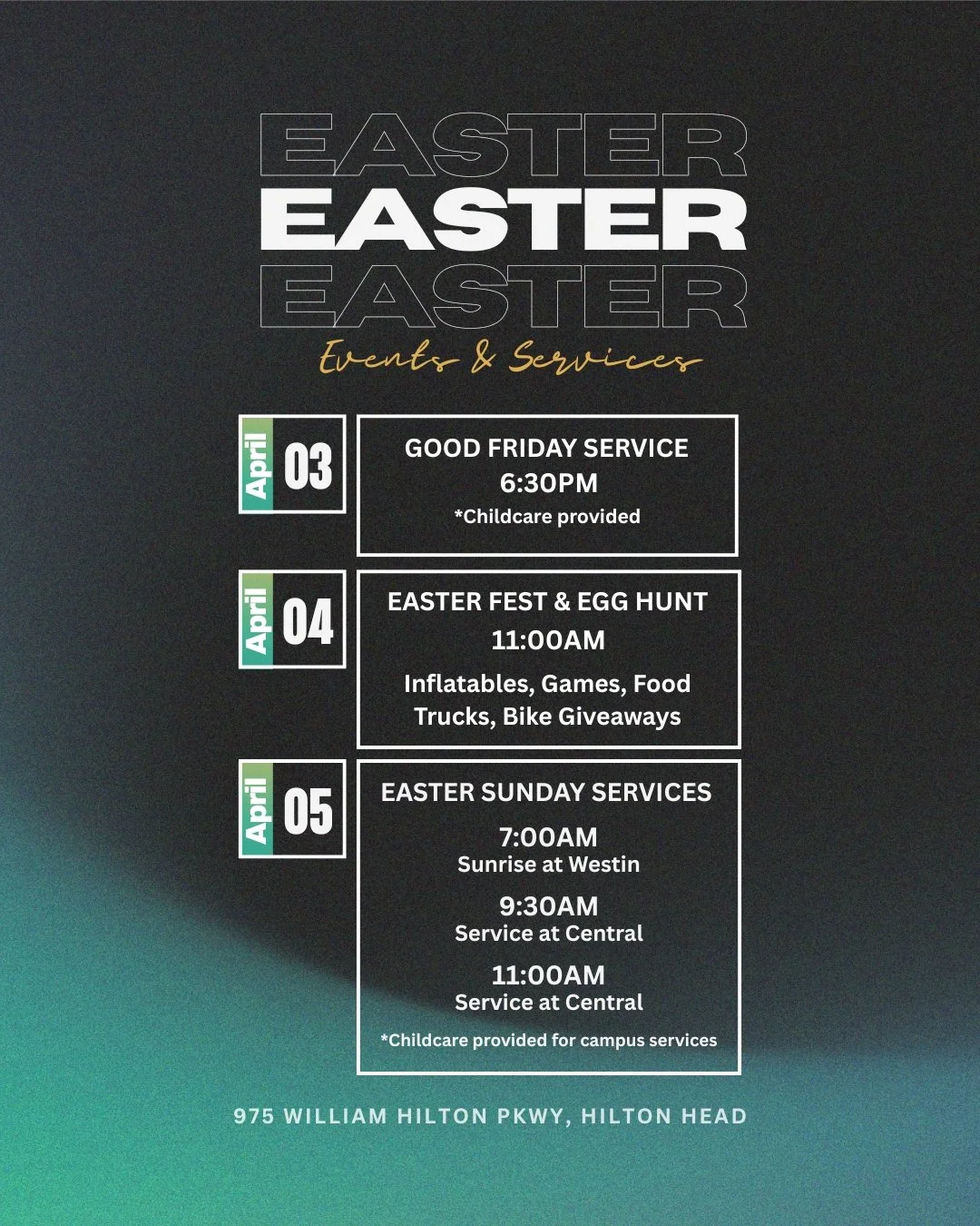 Inflatables, games, food trucks, and bike giveaways!Easter Sunday Services