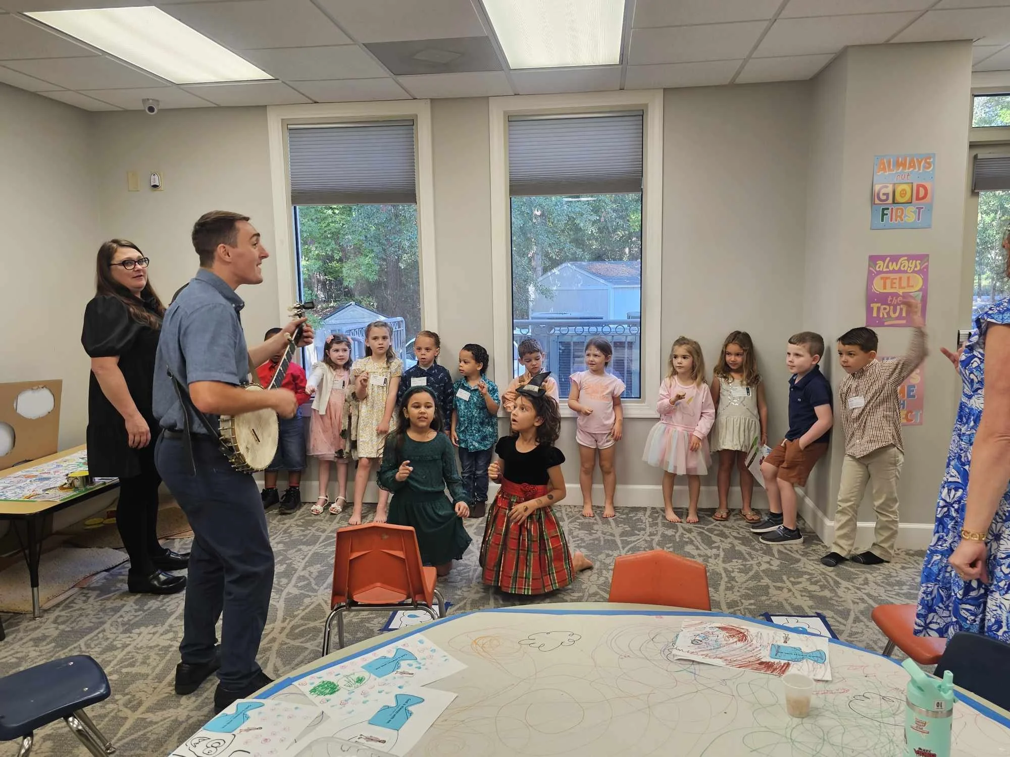 To ensure their safety, each child will receive a name tag while their parents receive a matching pick-up tag. The child’s name tag includes their name, primary contact, and any allergies they might have.